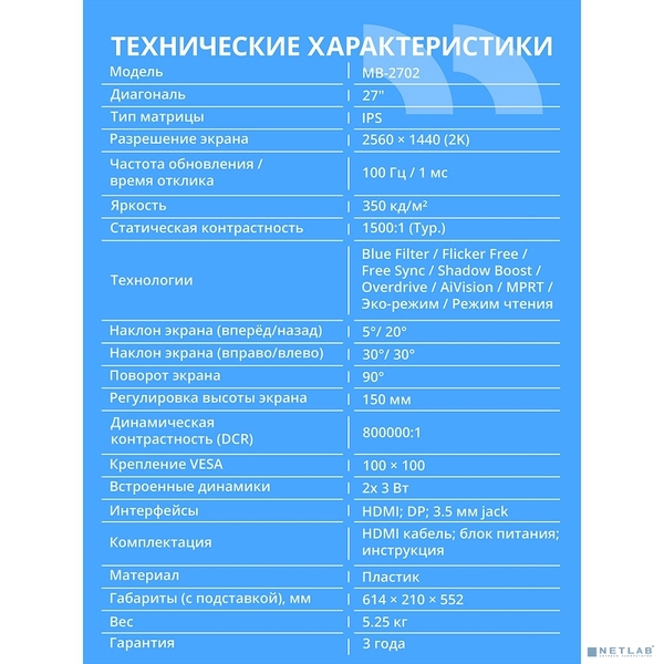 Монитор CBR LCD Монитор 27" MB-2702, IPS, QHD 2K 2560x1440, 100Гц [LCD-MB2702-OPC] купить в интернет-магазине TPShop.Ru. Наличный и безналичный расчет, розничные и оптовые продажи. Самовывоз, доставка по Москве и МО, отправка во все регионы России.