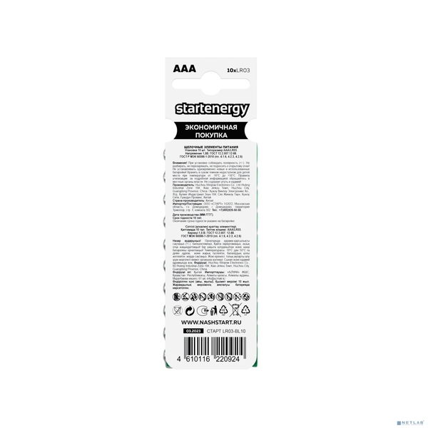 START ENERGY LR03-BL10 - 120/1080 (10 шт. в уп-ке) купить в интернет-магазине TPShop.Ru. Наличный и безналичный расчет, розничные и оптовые продажи. Самовывоз, доставка по Москве и МО, отправка во все регионы России.