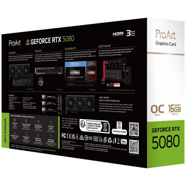 Видеокарта Видеокарта Asus PCI-E 5.0 PROART-RTX5080-O16G NVIDIA GeForce RTX 5080 16Gb 256bit GDDR7 2700/30000 HDMIx1 DPx3 HDCP Ret купить в интернет-магазине TPShop.Ru. Наличный и безналичный расчет, розничные и оптовые продажи. Самовывоз, доставка по Москве и МО, отправка во все регионы России.
