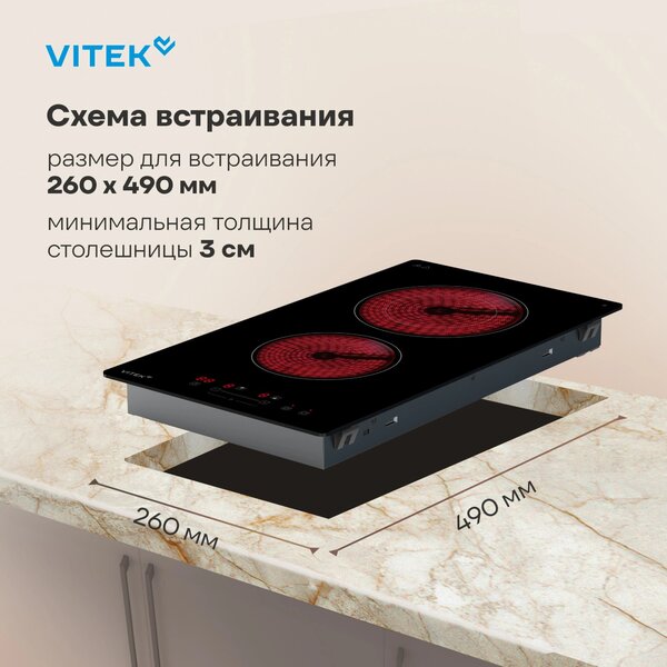 Варочная панель Варочная поверхность Vitek VHE3220 черный купить в интернет-магазине TPShop.Ru. Наличный и безналичный расчет, розничные и оптовые продажи. Самовывоз, доставка по Москве и МО, отправка во все регионы России.
