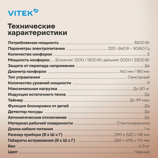 Варочная панель Индукционная варочная поверхность Vitek VHI3210 черный купить в интернет-магазине TPShop.Ru. Наличный и безналичный расчет, розничные и оптовые продажи. Самовывоз, доставка по Москве и МО, отправка во все регионы России.