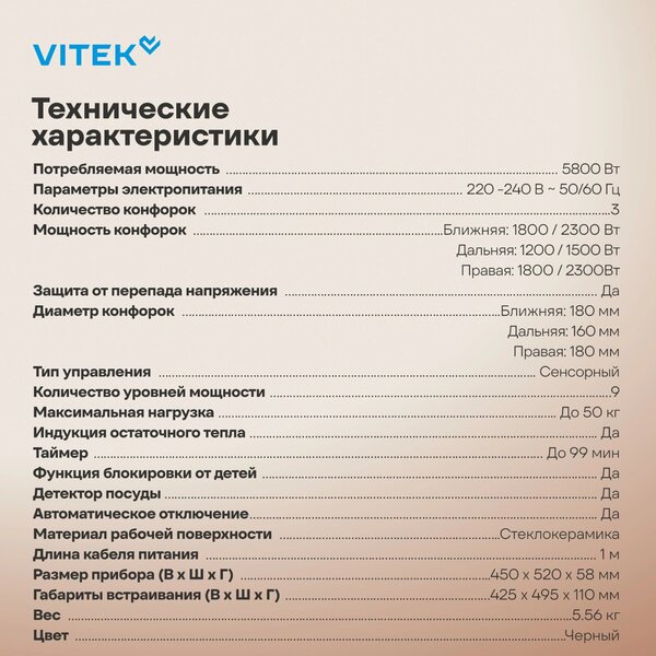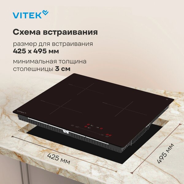 Варочная панель Индукционная варочная поверхность Vitek VHI4310 черный купить в интернет-магазине TPShop.Ru. Наличный и безналичный расчет, розничные и оптовые продажи. Самовывоз, доставка по Москве и МО, отправка во все регионы России.