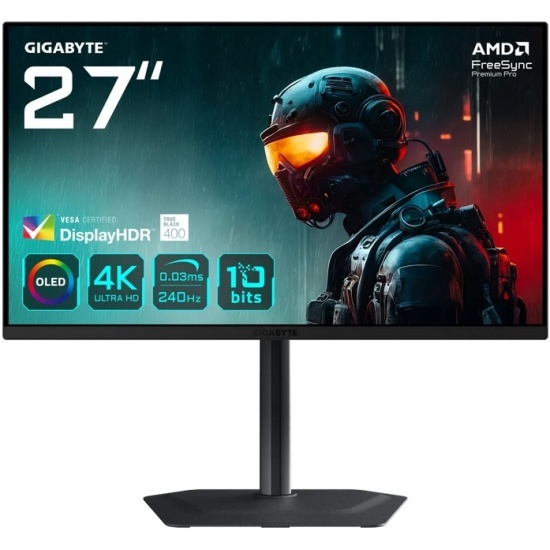 Монитор Монитор 27" Gigabyte MO27U2 EK Black (OLED, 3840 x 2160 (UHD), 240Hz, 0,03ms, 250cd/m, 1,5M:1, 2xHDMI-2.1, DP-1.4, 3xUSB3.2, USB Type-C до 18 Вт)