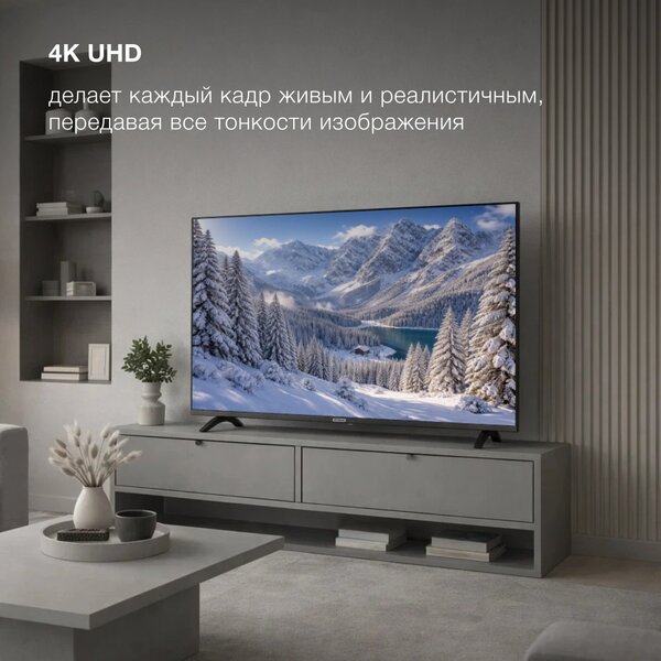 Телевизор Телевизор LED Hyundai 43" H-LED43BU7012 YaOS Frameless черный/черный 4K Ultra HD 60Hz DVB-T DVB-T2 DVB-C DVB-S DVB-S2 USB 2.0 WiFi Smart TV