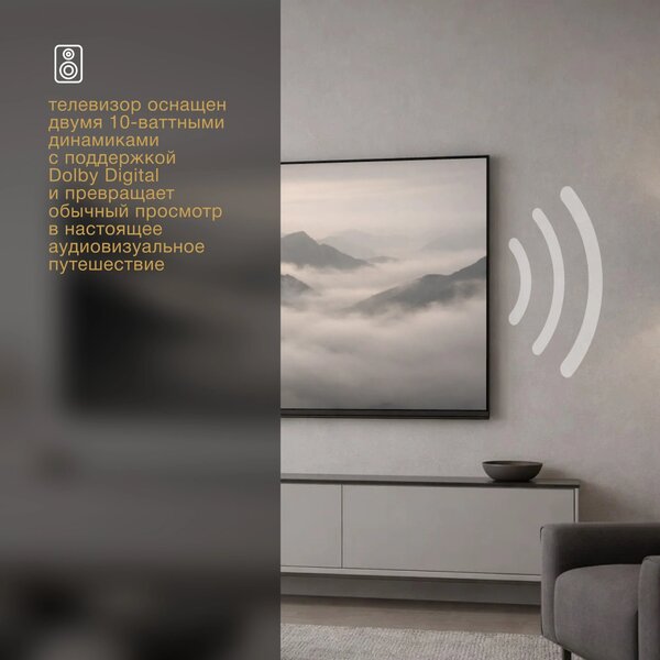 - безрамочный дизайн, возможность крепления на стену, тонкий корпус