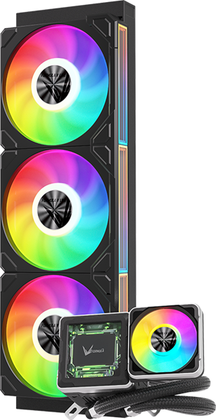 - Cryo Wing Digi 360 — это высокопроизводительное жидкостное охлаждение AIO формата 360 мм, разработанное для современных платформ Intel и AMD с поддержкой TDP до 340 Вт. Оснащено медным основанием, алюминиевым радиатором, тремя 120-мм вентиляторами с ARGB-подсветкой и ярким 2,73-дюймовым ЖК-экраном для мониторинга системы в реальном времени. Благодаря ШИМ-управлению, прочным оплёткам трубок и синхронизированной ARGB-подсветке обеспечивает эффективное, тихое и визуально эффектное охлаждение.
