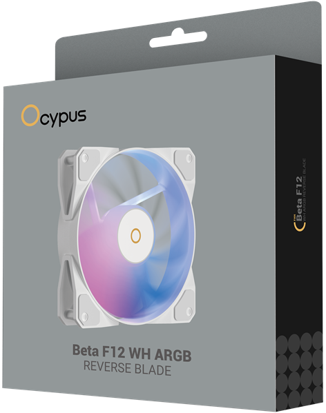 - Ocypus Beta F12 WH ARGB REVERSE BLADE, 120x120x25mm, 4-PIN PWM, 800-1600 RPM, 29 DBA MAX, HYDRO BEARING