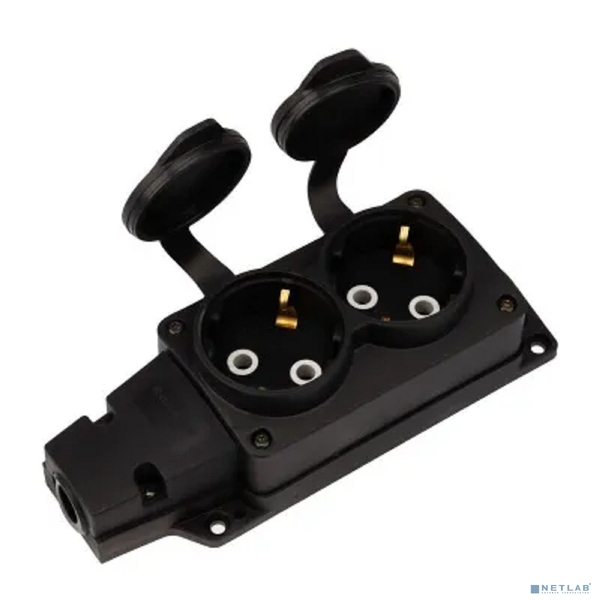 Rexant (111-222) Розетка (колодка) влагозащищенная с крышкой 2 гнезда COMPACT, с/з, 16А, IP54, каучук, черная