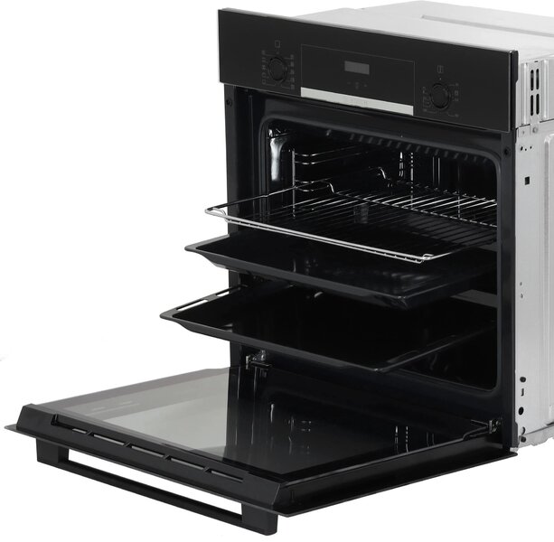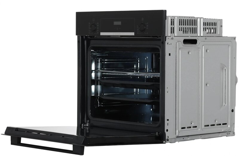 - вентилятор охлаждения, дисплей, полностью стеклянная внутренняя поверхность дверцы духовки