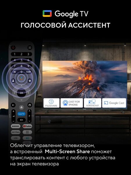 - голосовое управление, пульт ДУ, родительский контроль, таймер включения/выключения, таймер сна, управление со смартфона