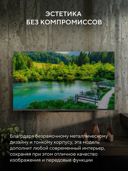 - безрамочный дизайн, возможность крепления на стену, тонкий корпус