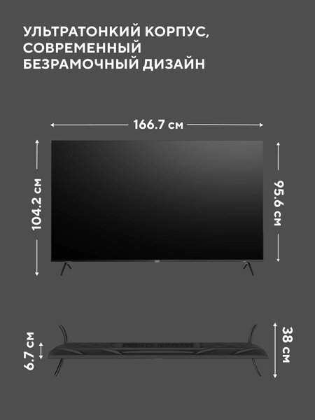 Телевизор Телевизор LED Hyundai 75" H-LED75BU7011 Google TV Frameless черный 4K Ultra HD 60Hz DVB-T DVB-T2 DVB-C DVB-S DVB-S2 USB WiFi Smart TV