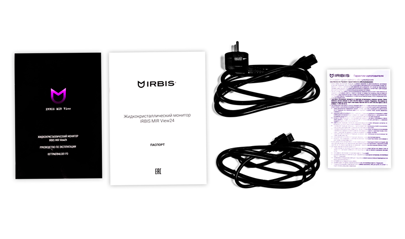 - Руководство пользователя, паспорт, гарантийный талон, кабель питания, кабель HDMI