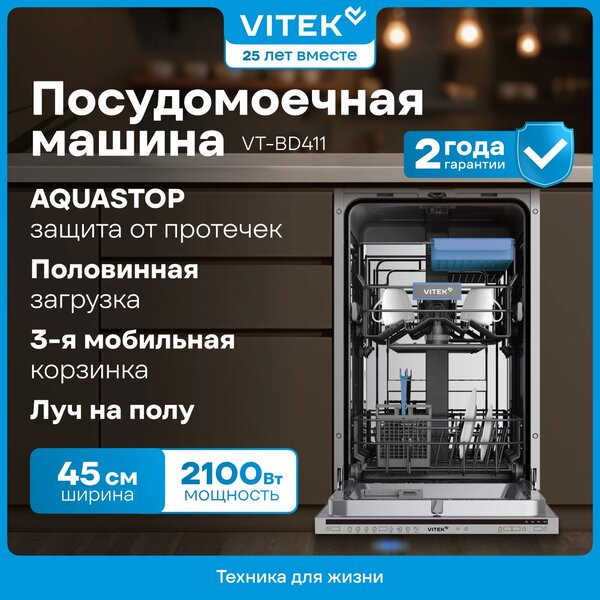 Посудомоечная машина Посудомоечная машина встраив. Vitek VT-BD411 2100Вт узкая купить в интернет-магазине TPShop.Ru. Наличный и безналичный расчет, розничные и оптовые продажи. Самовывоз, доставка по Москве и МО, отправка во все регионы России.