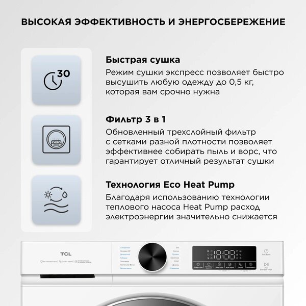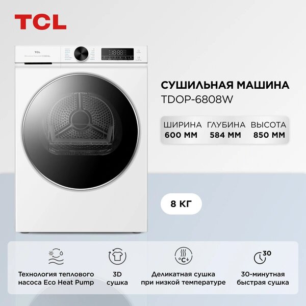 Сушильная машина TCL TDOP-6808W кл.энер.:A++ макс.загр.:8кг белый купить в интернет-магазине TPShop.Ru. Наличный и безналичный расчет, розничные и оптовые продажи. Самовывоз, доставка по Москве и МО, отправка во все регионы России.