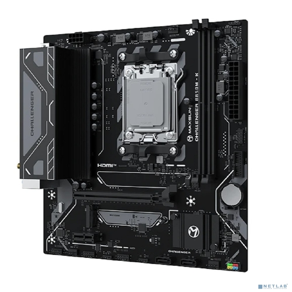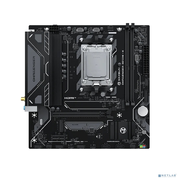 Материнская плата MAXSUN MS-Challenger B850M-K WIFI (Socket AM5, mATX, 2*DDR5 (96Gb), HDMI 1.4, 2*SATA3, 1*M.2, 1*PCIEx16/1*PCIEx1, 2*USB 2.0, 4*USB 3.2, LAN 1*1G, Wi-Fi 6, RTL)