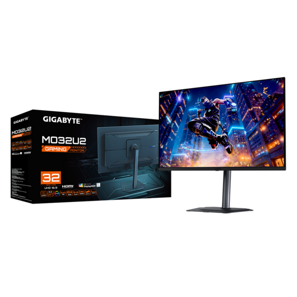 Монитор Монитор 31.5" Gigabyte MO32U2 EK Black (31,5 "QD-OLED, 3840 x 2160, 240Hz, 2xHDMI 2.1, DP 1.4, 3xUSB 3.2, USB Type-C (18Вт), 0,03 ms,178°/178°, 250 нит (типичная), 1000 нит (пиковая), 1,5 М:1, Pivot)
