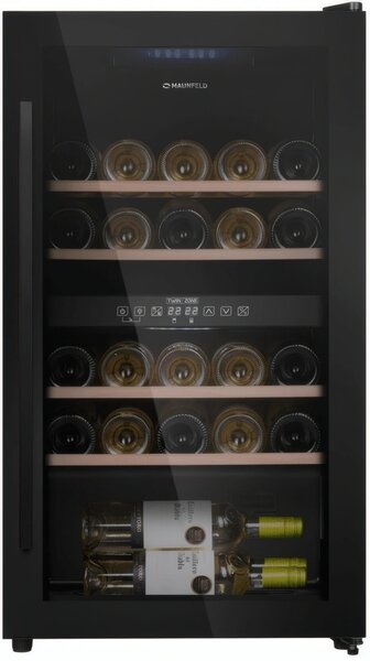 Винный шкаф Maunfeld MFWC-85D28 2-хкамерн. черный глянц. купить в интернет-магазине TPShop.Ru. Наличный и безналичный расчет, розничные и оптовые продажи. Самовывоз, доставка по Москве и МО, отправка во все регионы России.
