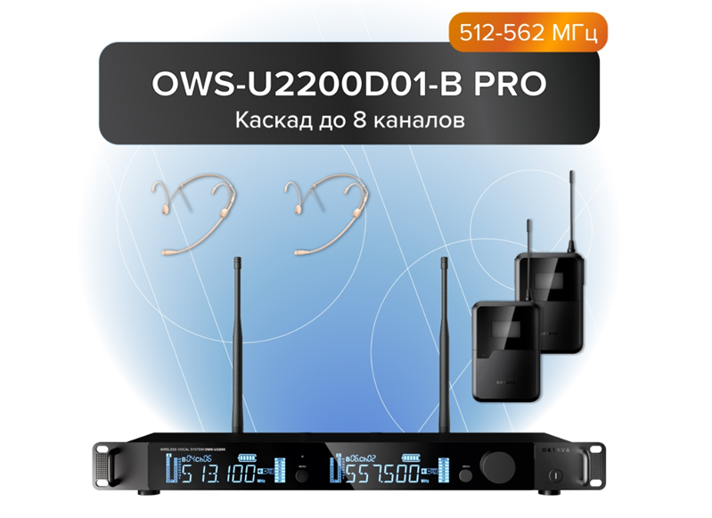 - Октава. 2-канальная радиосистема с 2-мя поясными передатчиками OWS-U1200TB и 2-мя головными микрофонами OWS-D01 (диапазон В:512-562 МГц).