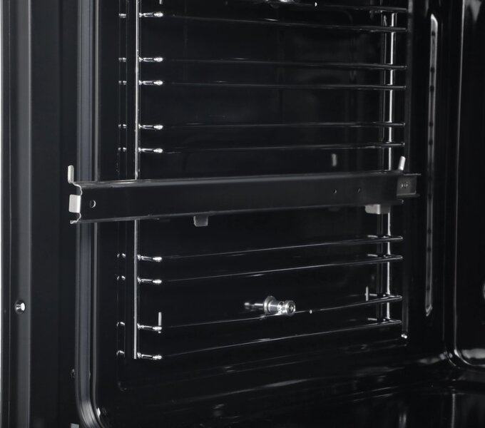 - дисплей, полностью стеклянная внутренняя поверхность дверцы духовки, телескопические направляющие