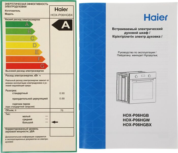 Духовой шкаф Духовой шкаф Электрический Haier HOX-P06HGBX черное стекло/нержавеющая сталь