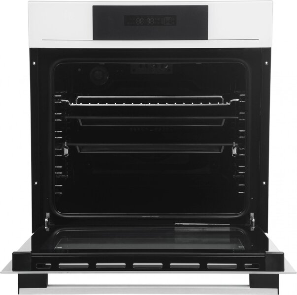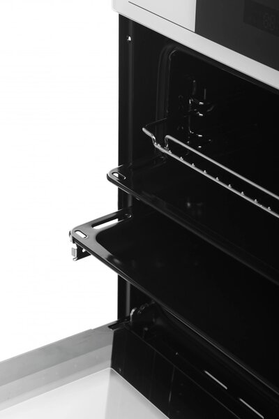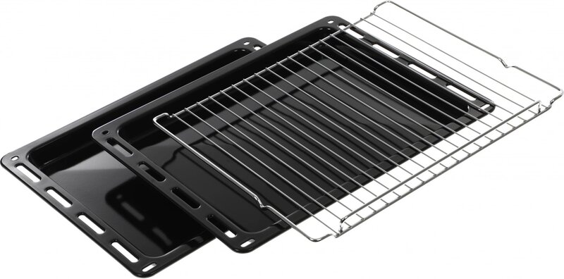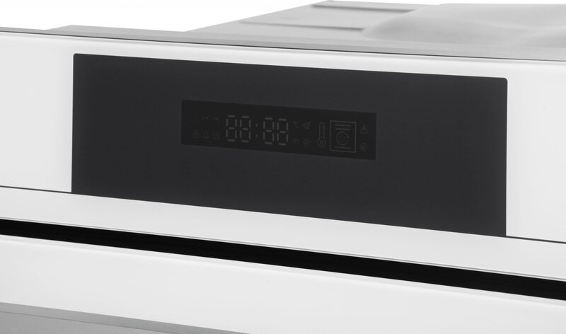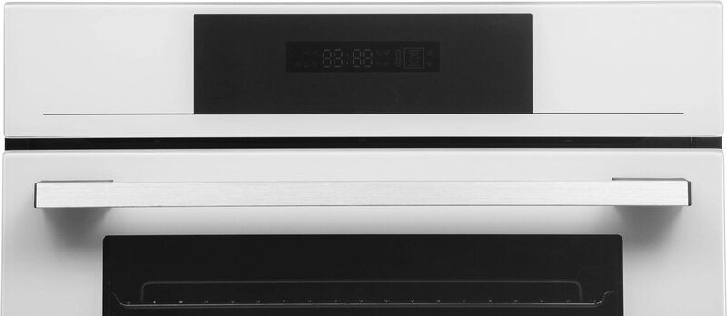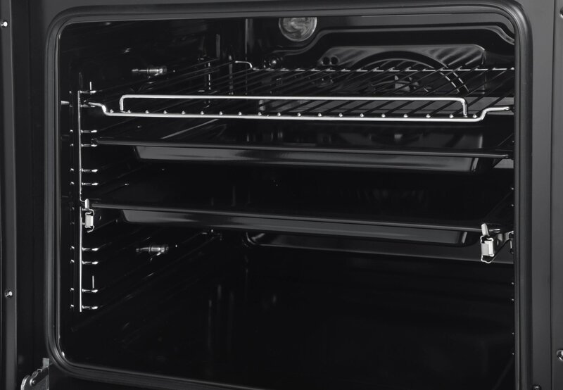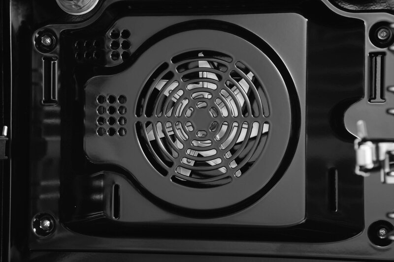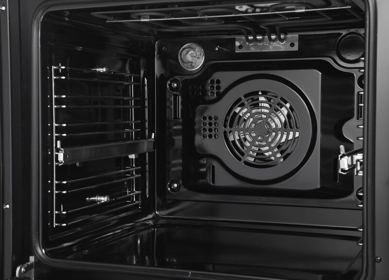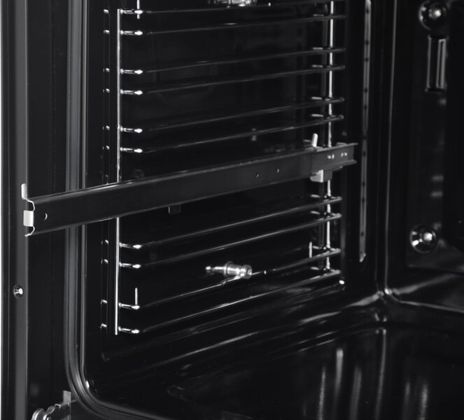 - вентилятор охлаждения, дисплей, полностью стеклянная внутренняя поверхность дверцы духовки, телескопические направляющие