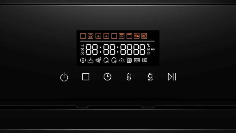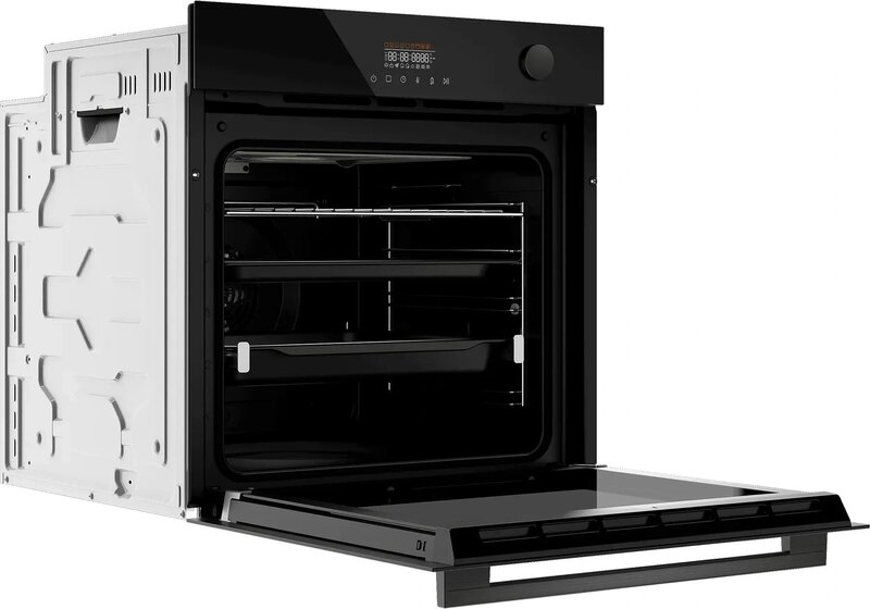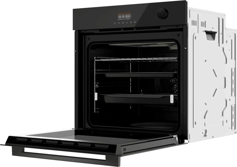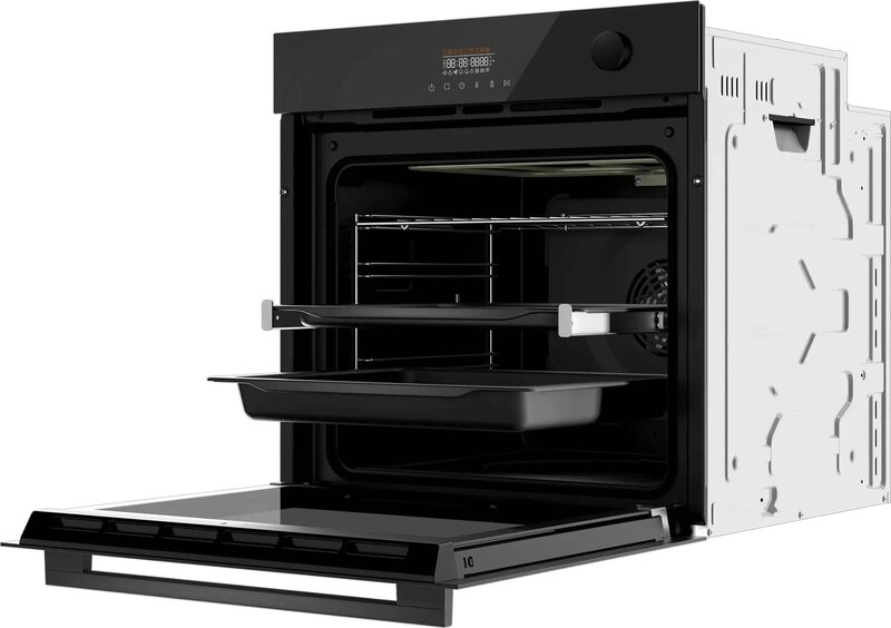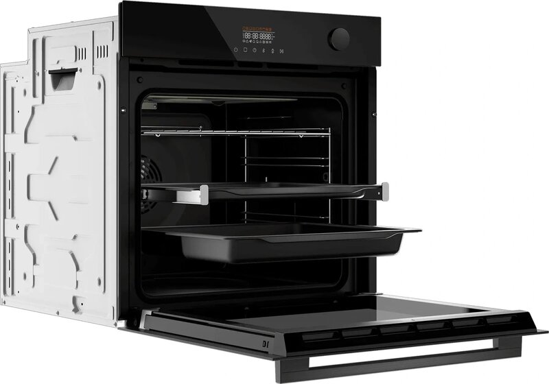 - дисплей, полностью стеклянная внутренняя поверхность дверцы духовки, телескопические направляющие