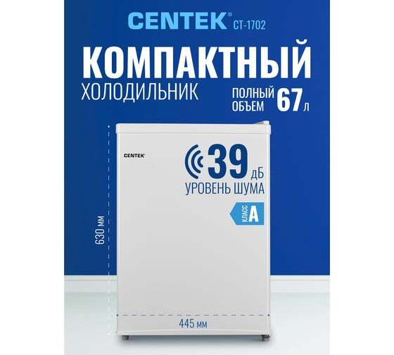 Холодильник Centek CT-1702 <66л> 445х510х630мм (ДхШхВ) 2 полки, 42 dB, класс "A+" купить в интернет-магазине TPShop.Ru. Наличный и безналичный расчет, розничные и оптовые продажи. Самовывоз, доставка по Москве и МО, отправка во все регионы России.