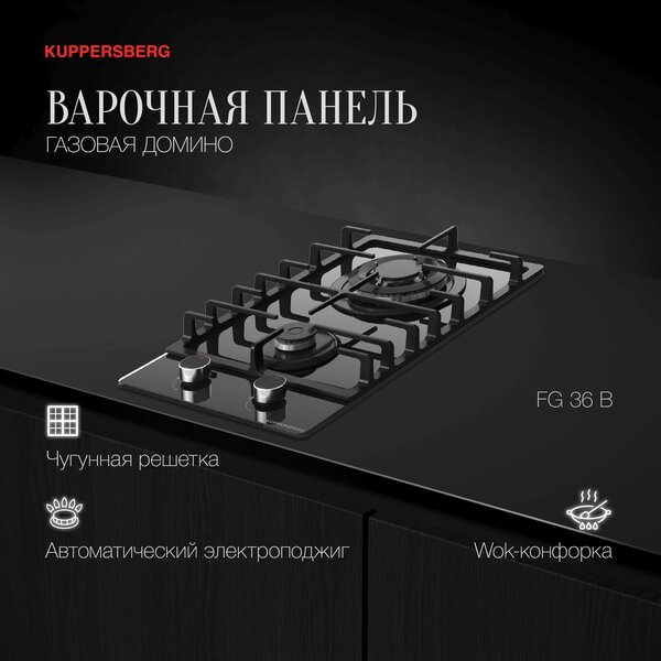 Варочная панель Газовая варочная поверхность Kuppersberg Hi-tech FG 36 B черный