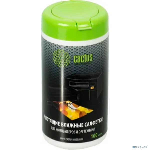 Cactus CS-T1002 Туба с чистящими салфетками для компьютеров и оргтехники, 100 шт