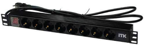 - ITK PDU 8 роз. нем.ст. с выкл 1U каб.2м вилка нем.ст ПВХ чер