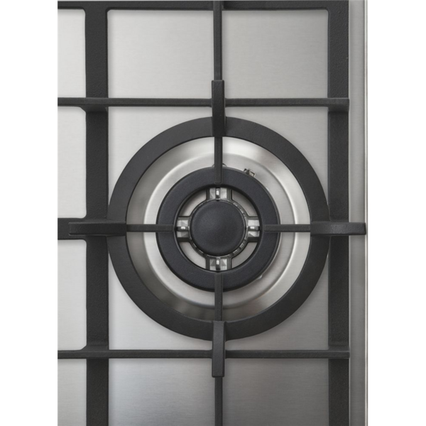 Korting Crystal, 45x51 см, газовая, нержавеющая сталь, независимая, электроподжиг, газ-контроль, чугунные решетки, в комплекте - подставка WOK и адаптер для кофейника, цвет-нержавеющая сталь