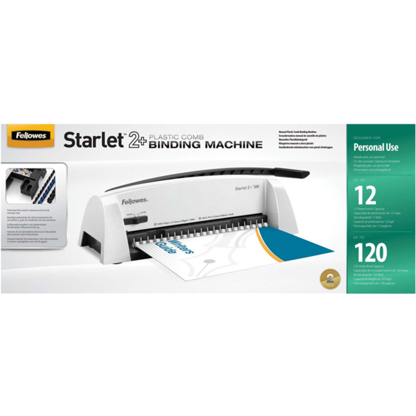 Переплетчик Fellowes STARLET 2+ A4/перф.12л.сшив/макс.120л./пластик.пруж. (6-18мм) купить в интернет-магазине TPShop.Ru. Наличный и безналичный расчет, розничные и оптовые продажи. Самовывоз, доставка по Москве и МО, отправка во все регионы России.