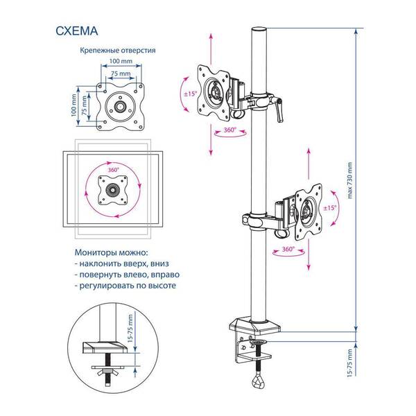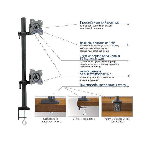 - Вращения экрана на 360° возможность размещения мониторов, как в вертикальном, так и в горизонтальном положении.