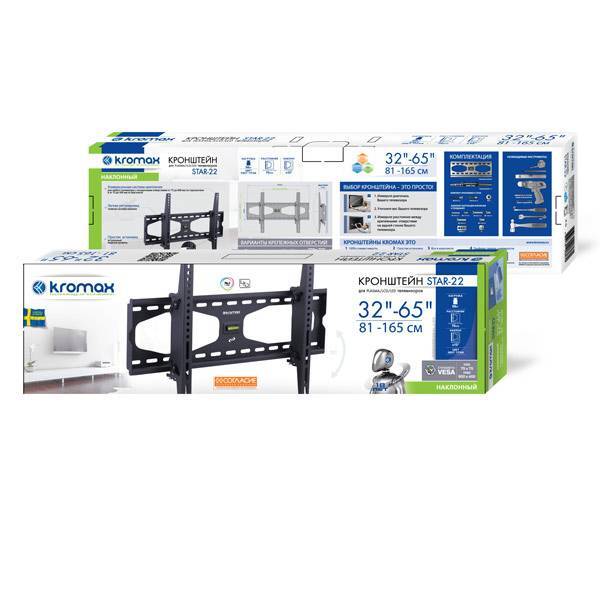 Kromax STAR-22 Кронштейн для TV 32"-65", настенный наклонный, max VESA 600x400, от стены 75мм, наклон ±12°, нагрузка до 50 кг, grey titan