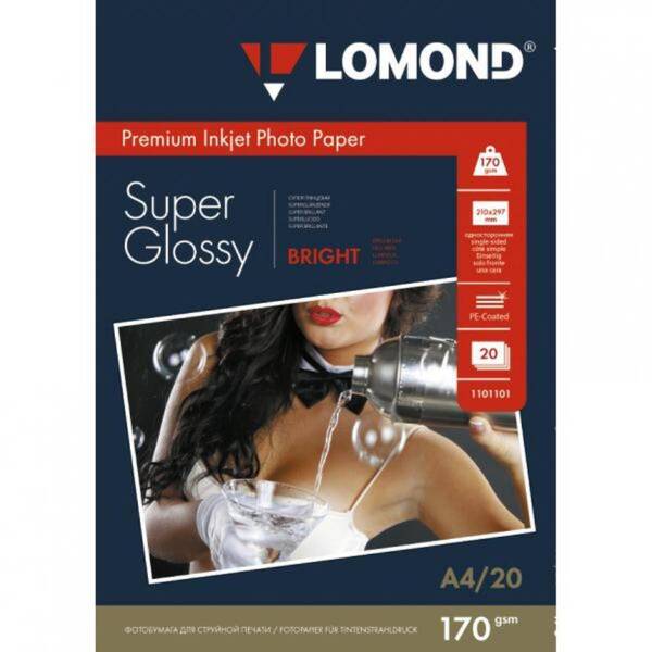 Бумага Lomond A4 170г/м2 20л.,cуперглянцевая (1101101)