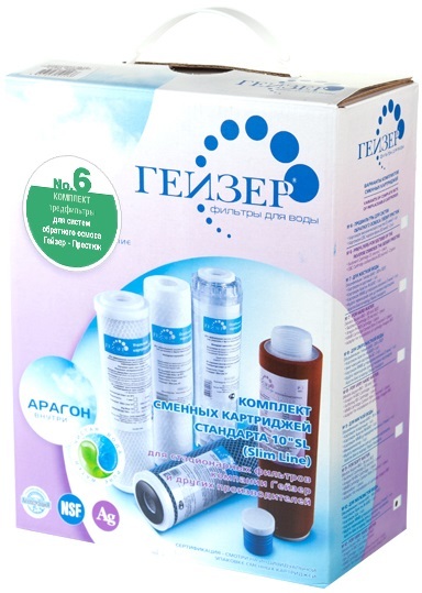 - Комплект картриджей Гейзер №1 предназначен для замены исчерпавших свой ресурс картриджей в стационарных трехступенчатых фильтрах для жесткой воды. Признаки жесткой воды: накипь белого цвета в чайнике, белый налет на сантехнике, плена в чае.
