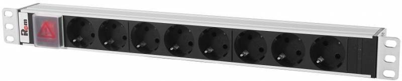 CMO Блок розеток Rem-10 без шнура с выкл., 8 Sсhuko, вход IEC 60320 C14, 10A, алюм., 19"