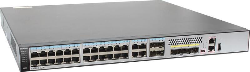 - Коммутатор Huawei S5720-36C-EI-AC (28xGE RJ45/4xCombo/,4x10GE SFP+, 1Slot; F/S: 132Mbs/598Gbs; MAC:64k; Управление: L3+,Full; Static Route; MPLS/OSPF/BGP/IS-IS; BFD/all/; TreeTopology/LACP/LAGs/ ERPS; sFlow/QoS/ACL; iStack,SVF; PSU: ~AC 1+0) [02359562]