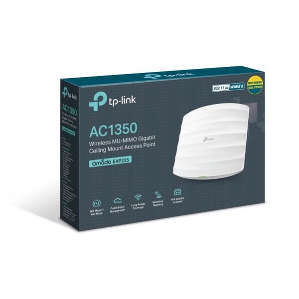 TP-Link EAP225 AC1200 Wireless Dual Band Gigabit Ceiling Mount Access Point, 400Mbps at 2.4GHz + 867Mbps at 5GHz, 802.11a / b / g / n / ac, 802.3at PoE Supported, 1 10 / 100 / 1000Mbps LAN port, with 4 internal omni-directional antennas