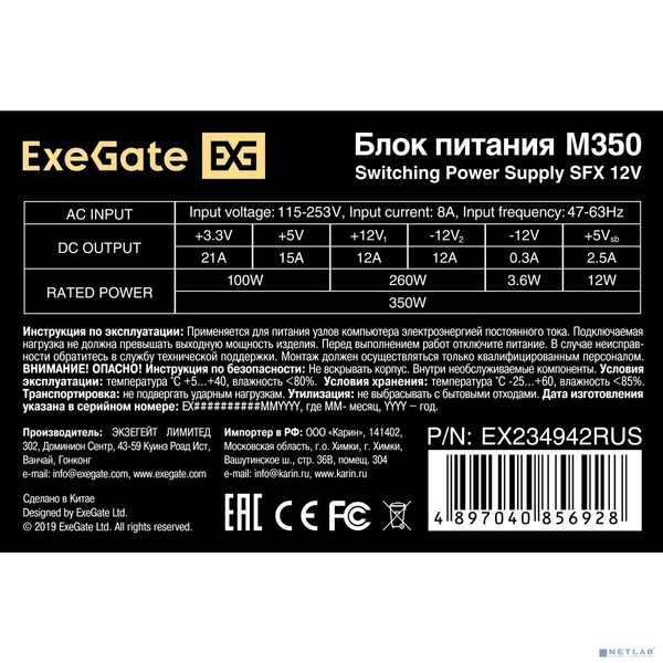 Блок питания Блок питания 350W Exegate M350, SFX, 8cm fan, 24+4pin, 2*SATA, 1*FDD, 1*IDE купить в интернет-магазине TPShop.Ru. Наличный и безналичный расчет, розничные и оптовые продажи. Самовывоз, доставка по Москве и МО, отправка во все регионы России.