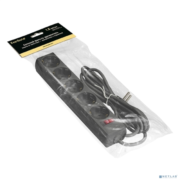 Сетевой фильтр Exegate SP-5-1.8B (5 розеток, 1.8м, евровилка, черный)