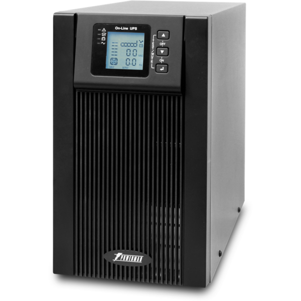 POWERMAN Online 3000, LCD, dual conversion, 3000VA, 2400W, 3 eurosockets with backup power, USB, RS232, SNMP slot, protection RJ11 / RJ45, battery 12V 9Ah 6 pcs., 191mm x 469mm x 339mm, 27 kg.