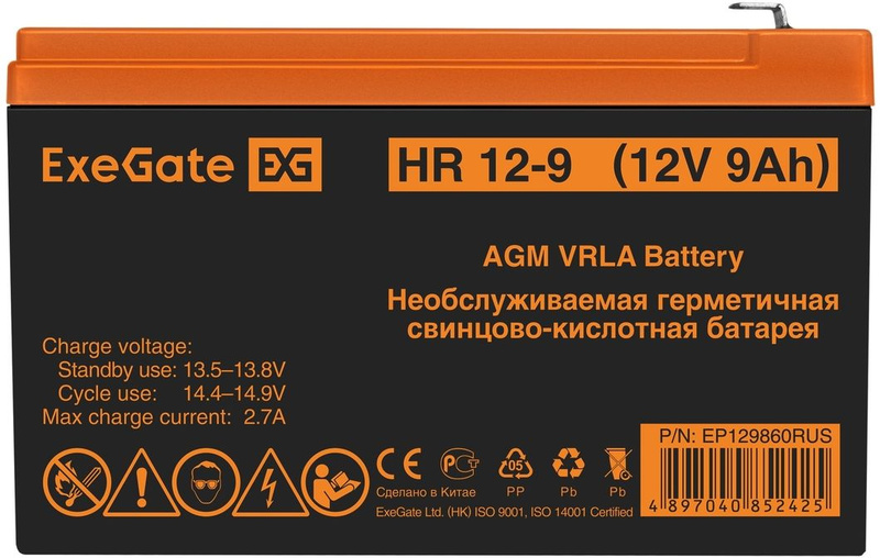 Аккумуляторная батарея EXEGATE EP129860RUS Power EXG1290, 12В 9Ач, клеммы F2 купить в интернет-магазине TPShop.Ru. Наличный и безналичный расчет, розничные и оптовые продажи. Самовывоз, доставка по Москве и МО, отправка во все регионы России.