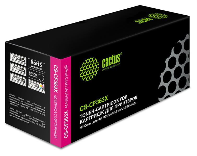 CACTUS CS-CF363X Тонер Картридж CS-CF363X пурпурный для HP CLJ M552dn/M553dn (9500стр.) купить в интернет-магазине TPShop.Ru. Наличный и безналичный расчет, розничные и оптовые продажи. Самовывоз, доставка по Москве и МО, отправка во все регионы России.