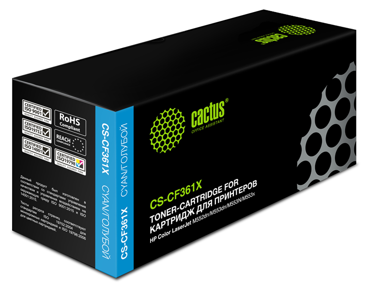 CACTUS CS-CF361X Тонер Картридж Cactus CS-CF361X голубой для HP CLJ M552dn/M553dn (9500стр.) купить в интернет-магазине TPShop.Ru. Наличный и безналичный расчет, розничные и оптовые продажи. Самовывоз, доставка по Москве и МО, отправка во все регионы России.