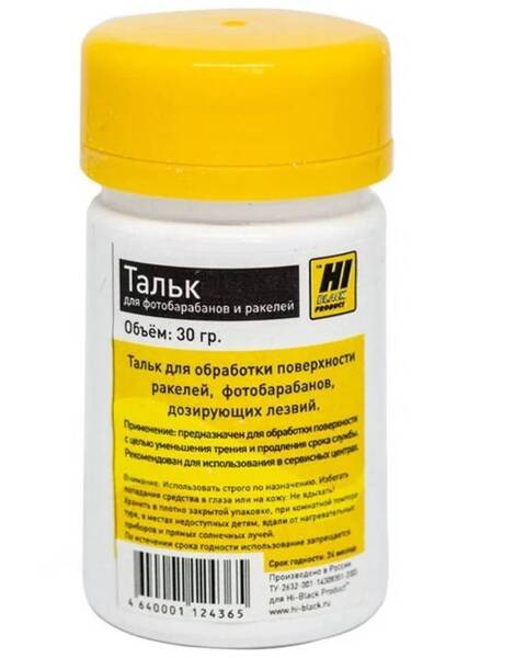 Опции к принтерам и МФУ Hi-Black Тальк для фоторецепторов и ракелей 30 гр. купить в интернет-магазине TPShop.Ru. Наличный и безналичный расчет, розничные и оптовые продажи. Самовывоз, доставка по Москве и МО, отправка во все регионы России.