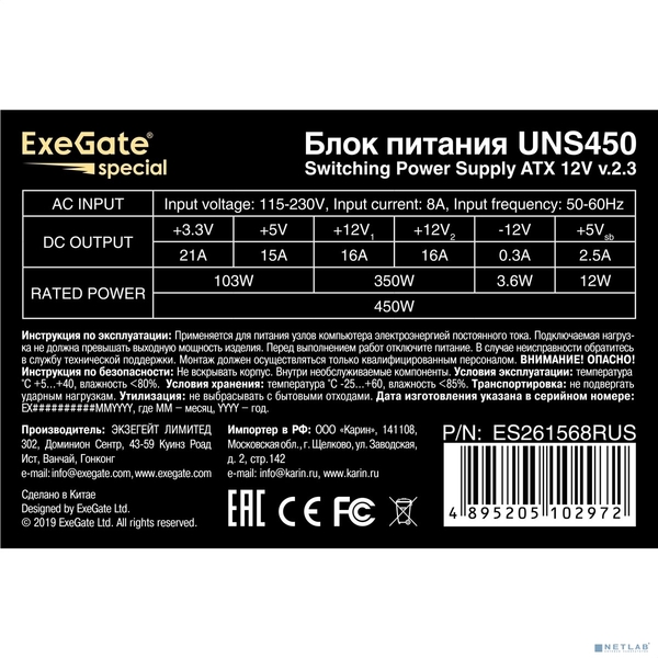 Блок питания Exegate Special UNS450 купить в интернет-магазине TPShop.Ru. Наличный и безналичный расчет, розничные и оптовые продажи. Самовывоз, доставка по Москве и МО, отправка во все регионы России.