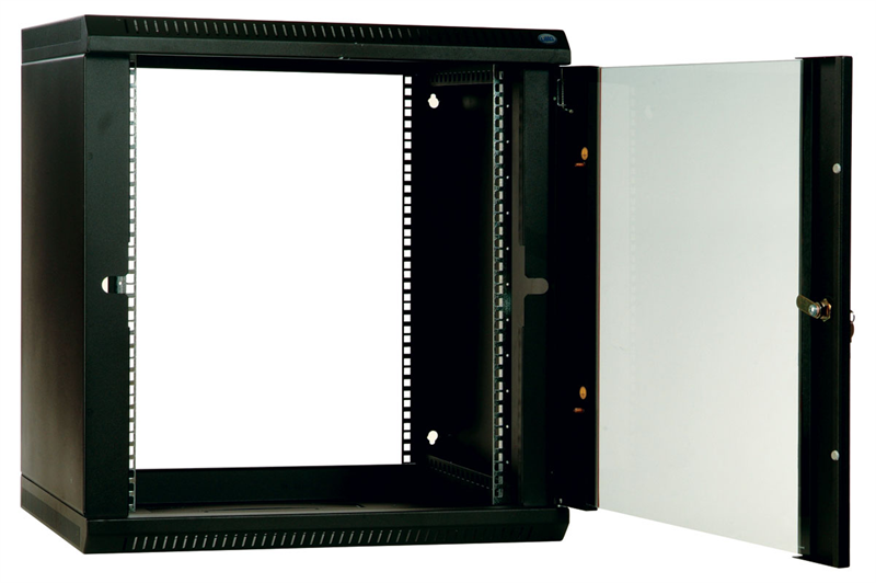 Hyperline TWB-0966-SR-RAL9004 Шкаф настенный 19-дюймовый (19"), 9U, 500x600х600мм, металлическая передняя дверь с замком, две боковые панели, цвет черный (RAL 9004) (разобранный)