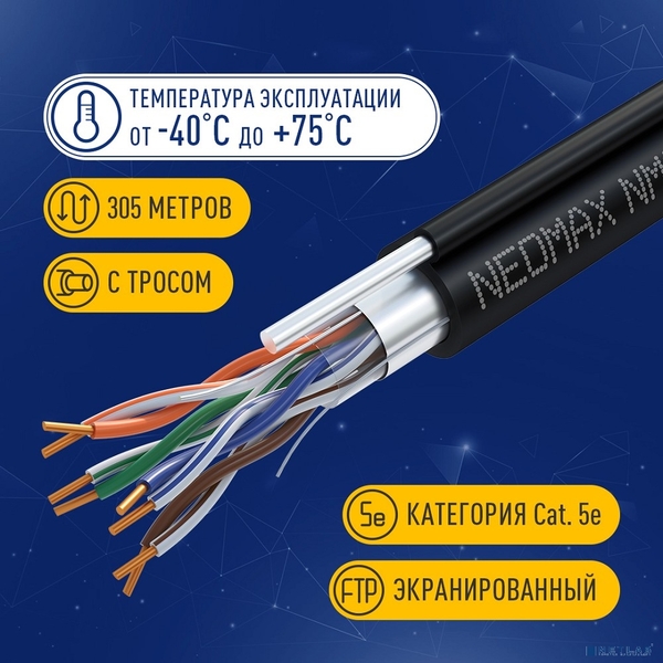 Neomax FTP внешний экранированный с тросом, Кат. 5е, 305 м. купить в интернет-магазине TPShop.Ru. Наличный и безналичный расчет, розничные и оптовые продажи. Самовывоз, доставка по Москве и МО, отправка во все регионы России.